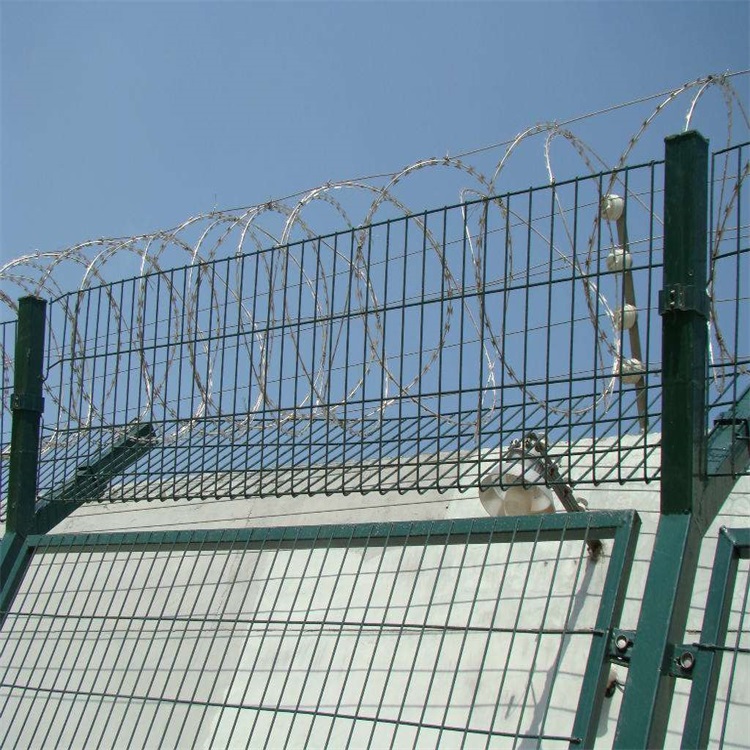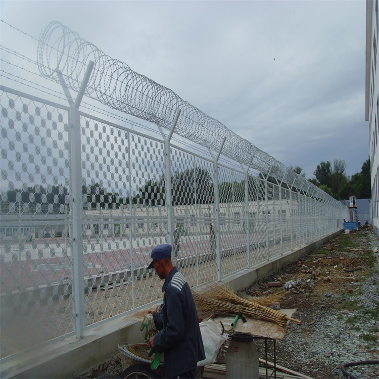監(jiān)獄鋼網(wǎng)墻又稱作“Y型安全防御護網(wǎng)”,是由V型支架立柱,加強型焊接片網(wǎng),安全防盜連接件和熱鍍鋅刀片刺籠組成強度和安全防御性級別很高。近年來,被廣泛應(yīng)用在監(jiān)獄,軍事基地等高安全場所。