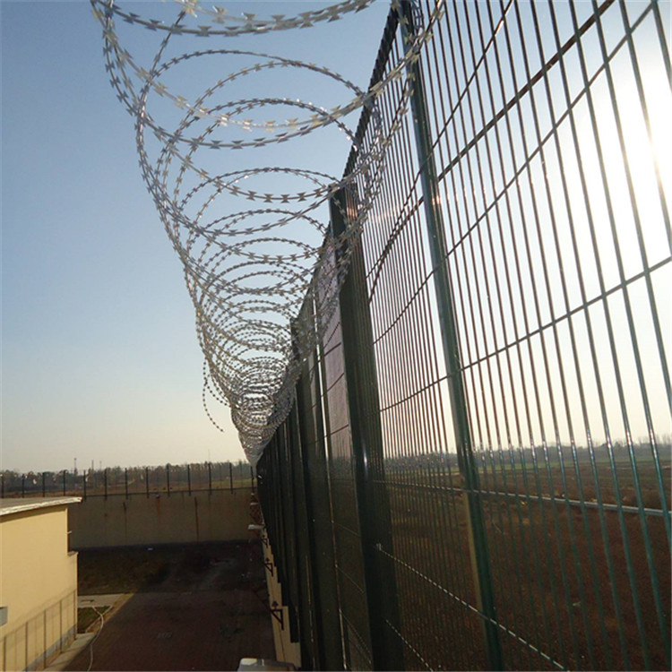 監(jiān)獄警戒隔離網(wǎng)由刀片剌網(wǎng)和圍欄網(wǎng)組合使用,刀片剌網(wǎng)有熱鍍鋅刀剌網(wǎng)和不銹鋼刀剌網(wǎng),都是防護(hù)效果很好的產(chǎn)品,其中不銹鋼刀刺網(wǎng)比熱鍍鋅刀刺網(wǎng)價(jià)格較高,相應(yīng)的防腐蝕效果、光亮度、材質(zhì)都要比熱鍍鋅刀刺網(wǎng)要好。監(jiān)獄警戒隔離網(wǎng)的防腐蝕處理有鍍鋅和涂塑,因?yàn)?/span>監(jiān)獄警戒隔離網(wǎng)屬于高安全場(chǎng)所使用,可以采用先鍍鋅后浸塑的方式,鍍鋅后的圍欄網(wǎng)韌性較好,可有效延長(zhǎng)監(jiān)獄警戒隔離網(wǎng)的使用年限。