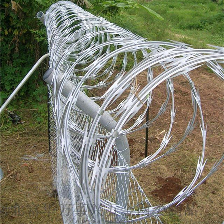 刀刺網在安裝過程中還有另外一種固定方法,用直柱作為支撐,在安裝過程中比較麻煩,策繩要用特殊的卡子推進式固定,從而形成水平圈,這種連接外觀更為簡單。