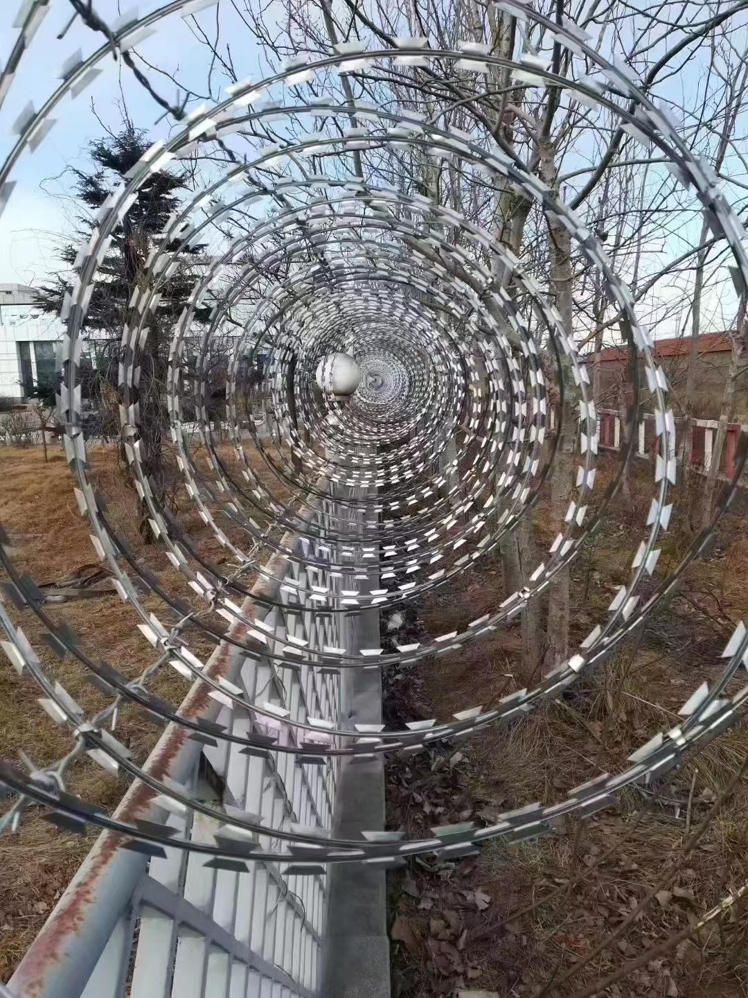 刺絲滾籠是由支架,縱向拉筋,抱箍,卡扣刀片刺繩這一系列組成的體系,重要的要數刀片刺繩與支架了,它如今曾經被廣為人知,其作用根本是相同的,都是起到一種阻攔作用,防止不用要的損失。