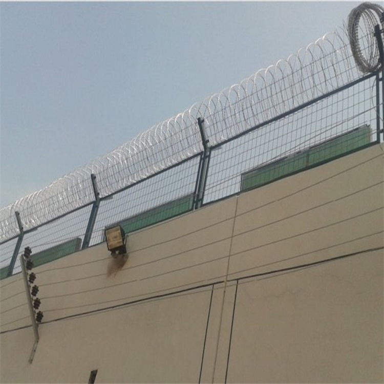 監獄防攀爬護欄網首要分鍍鋅,浸塑兩種,是以立柱網片加刀片刺繩制造而成。