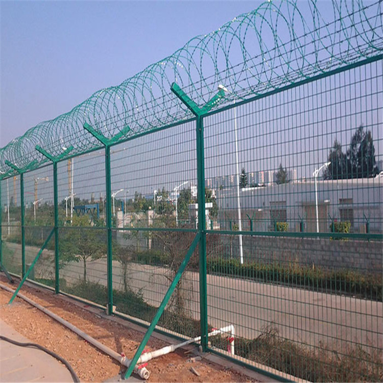 3.機場圍界采用低碳鋼絲(Q195),表面浸塑防腐處理,顏色為綠色