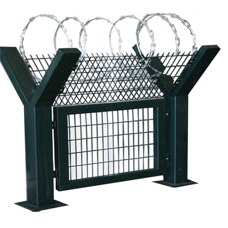 (2)監(jiān)獄護(hù)欄網(wǎng)的頂部安裝刀片刺繩之后,會(huì)提高監(jiān)獄護(hù)欄網(wǎng)的防護(hù)強(qiáng)度和美觀性。
