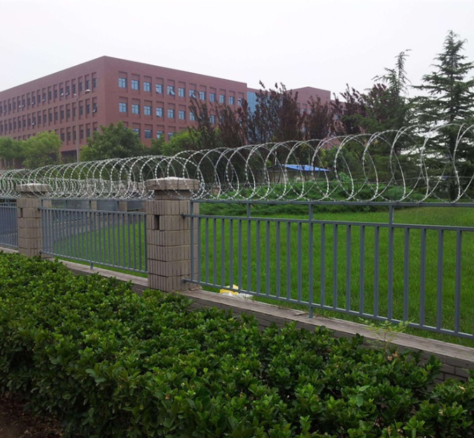 從使用環境來說,有一些學校因為建設的時間很長了,國墻相對于現在的新式國墻就低矮一些。我們就選擇既可以防爬又能增加國墻高度的刀刺網。也就是我們常見的蛇形刀片刺繩。這種刀刺網的直徑有50公分、60公分,安裝以后國墻高度會增加,既有防攀爬的效果又能塔加國墻的高度。