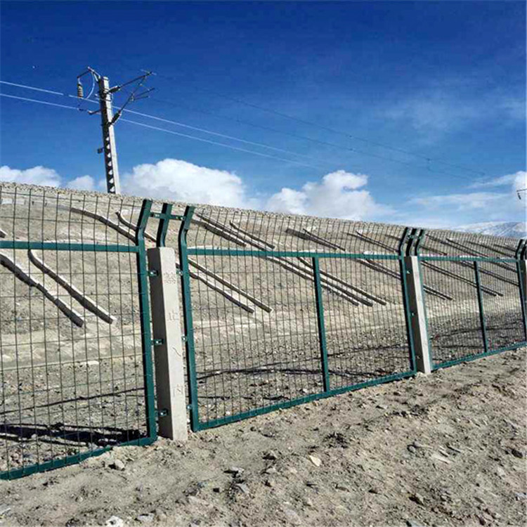 鐵路沿線防護柵欄的應用,鐵路防護用品,分很多類型。護欄網類:熱鍍鋅防護柵欄、鐵路加高網片、熱鍍鋅防爬刺、浸塑鐵路防護柵欄等。防攀爬設施:在護欄網的頂端設置刀刺網,用立柱支架和加密支架固定刺絲滾籠,鋒利的刀片有效阻止了人、動物等的進入,避免安全事故的發生。