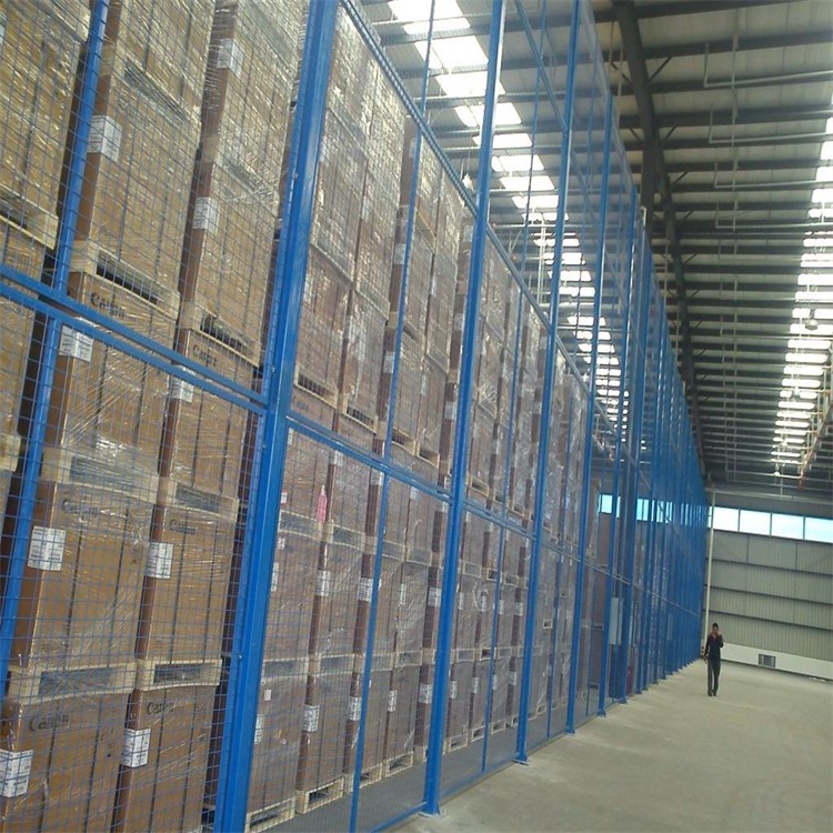 倉庫貨物有的時候需要堆放很高,這個時候就需要把倉室隔離的也很高,然后普通的護欄網高度是受限制的,時候就給我們出了難題了,那么我們的解決辦法就是通過分層安裝隔離網可以達到預期的目的。首先,需要把立柱做的足夠高(當然也要足夠的粗,壁厚要足夠厚,可以承受護欄網自身的負荷),法蘭盤也要適當大些保證與地面能連成一體;其次,需要把倉庫隔離網一片一片懸掛到立柱上,可以是分兩層或是三層(一般兩層就足夠了),這樣既牢固又便于安裝和運輸。