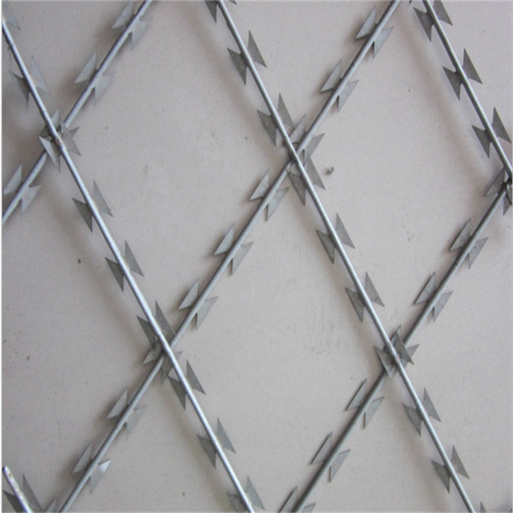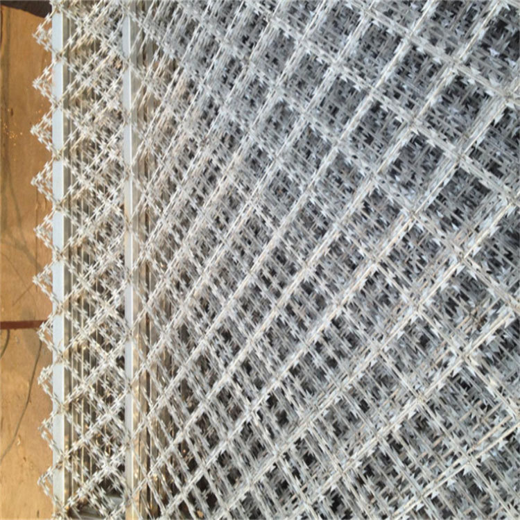 其材質(zhì)選用高強(qiáng)度鋼板與鍍鋅鋼絲,經(jīng)精密焊接、整體鍍鋅處理,不僅刀片鋒利度高、穿透力強(qiáng),還具備優(yōu)異的抗腐蝕性能,可在戶外惡劣環(huán)境下長期使用。與傳統(tǒng)的刺繩相比,焊接刀片刺網(wǎng)結(jié)構(gòu)更牢固,不易松散、斷裂,且安裝時(shí)無需復(fù)雜的拉緊裝置,可直接固定在立柱或圍網(wǎng)上,施工效率更高。此外,它的刀片密度可根據(jù)防護(hù)需求調(diào)整,密度越高,防護(hù)等級(jí)越強(qiáng),能針對(duì)不同場(chǎng)景形成差異化的安全防護(hù),為高安全需求場(chǎng)所構(gòu)建一道難以突破的“物理屏障”。