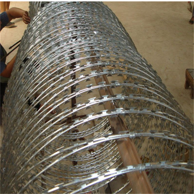 在結構方面,螺旋式刀刺網采用高強度鋼絲卷曲成螺旋狀,形成連續且密集的刀刺圈層。這種設計使其具備良好的伸縮性與柔韌性,能夠適應不同角度的安裝表面。當受到外力沖擊時,螺旋結構可通過形變吸收部分能量,同時保持整體防護的連續性。其鋒利的刀片呈規律性分布,能有效增加接觸面的復雜性,從而發揮阻攔與警示作用。