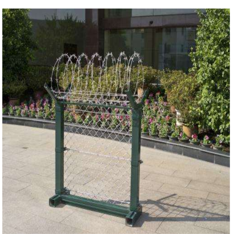 鋁包鋼機場圍界采用冷拉低碳鋼絲外徑包裹鋁層的防腐處理,鋁包鋼絲抗拉強度應達到500Mpa,立柱采用由冷軋鋼帶直縫焊接而成的矩形燕尾鋼管并做內外防腐處理,要求鋼帶抗拉強度應達到375Mpa;斜撐采用由熱軋鋼帶直縫焊接而成的矩形鋼管并做內外防腐處理,要求鋼帶抗拉強度應達到375Mpa。延伸臂由熱軋角鋼焊接而成并做防腐處理,要求抗拉強度應達到375Mpa。鋁包鋼絲滾籠為主絲直徑3.0mm的冷拉高碳鋼絲,抗拉強度應達到1340Mpa;刺絲為直徑2.2mm的冷拉低碳鋼絲,抗拉強度應達到500Mpa,鋁包鋼刺絲為主絲直徑2.8mm的冷拉高碳鋼絲,抗拉強度應達到1340Mpa;刺絲為直徑2.2mm的冷拉低碳鋼絲,抗拉強度應達到500Mpa,間距均為100-200mm。鋁包鋼絲滾籠與刺鋼絲采用不銹鋼扎絲連接,沿長度方向每隔500mm設4個連接處。