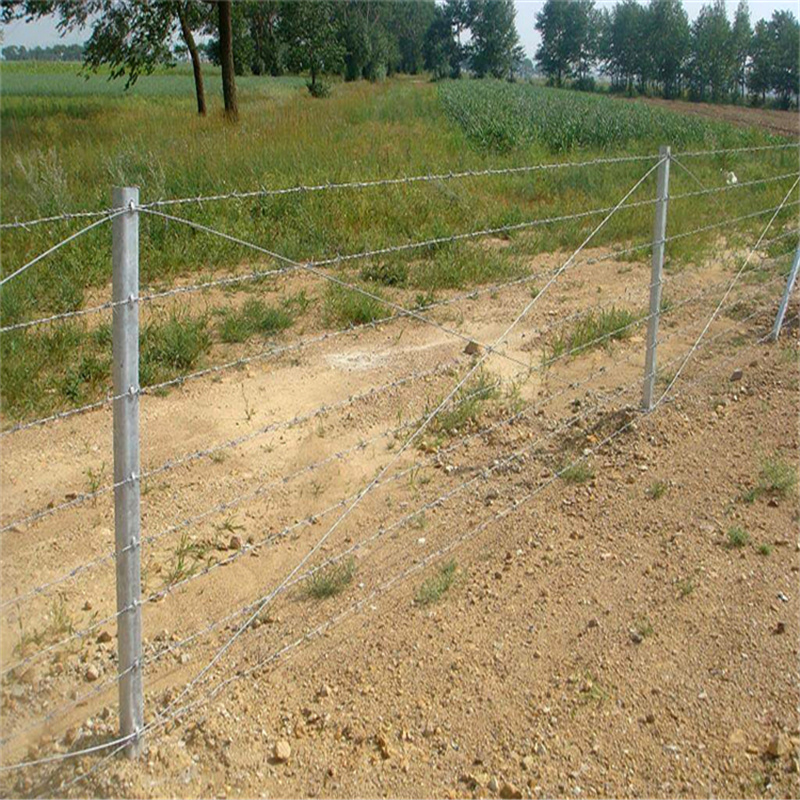 刺鐵絲阻隔柵的長處是防護作用可靠,運用壽數較長,在干旱區域可用數十年;過火濕潤區域銹蝕嚴峻,7~8年后即可報廢。缺點是刺鐵絲阻隔柵易危害畜體皮裘,缺少彈性,夏天熱脹懈怠,冬季冷縮開裂或拉斷受力樁。