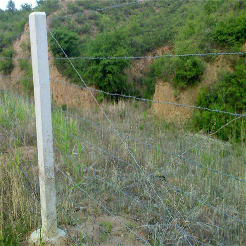 刺鐵絲隔離柵主要采用刺鐵絲和立柱組合,做防護網使用,起到隔離防護的作用。刺鐵絲也可配合柵欄使用,架在柵欄的上方,多用在變電站,飛機場等地。