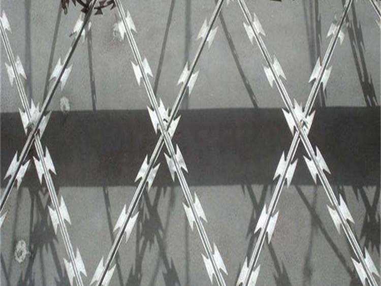 5、刀刺網隔離柵網片及刺鋼絲施工方法:按照規范要求進行網片焊接、加工,加工完畢后進行外部處理;運至現場掛網安裝,之后進行刺鋼絲的安裝;在放樣和定位工作完成的基礎上,根據要求進行基礎及立柱施工,而后進行網片安裝施工,進行刺鋼絲施工。