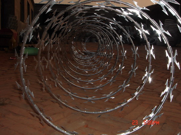 戒毒所刀片滾籠具有美觀、經濟實用、防阻效果好、施工便利等優異特點,刀片刺網由熱鍍鋅鋼板或不銹鋼薄板沖壓出尖銳的刀片狀,高張力鍍鋅鋼絲或者不銹鋼絲做芯線組合而成的阻絕器材。由于刺網造形獨特不易觸摸,因而能達到極好的防護隔離效果。刀片刺網已被廣泛應用于工礦企業,園林公寓,邊防哨所,軍事領域,監獄,看守所,政府建筑物和其他國家的安全設施。