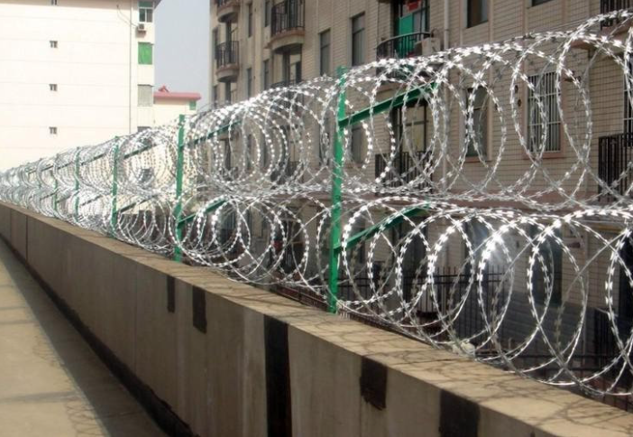5. 蛇腹形刀刺網施工主要包括以下內容:清理場地確認硬化程度可直接安裝支架底盤、安裝支架、拉線布置、蛇腹形刀刺網安裝。