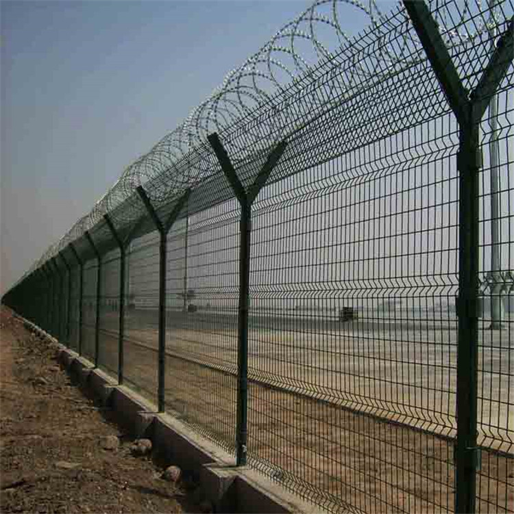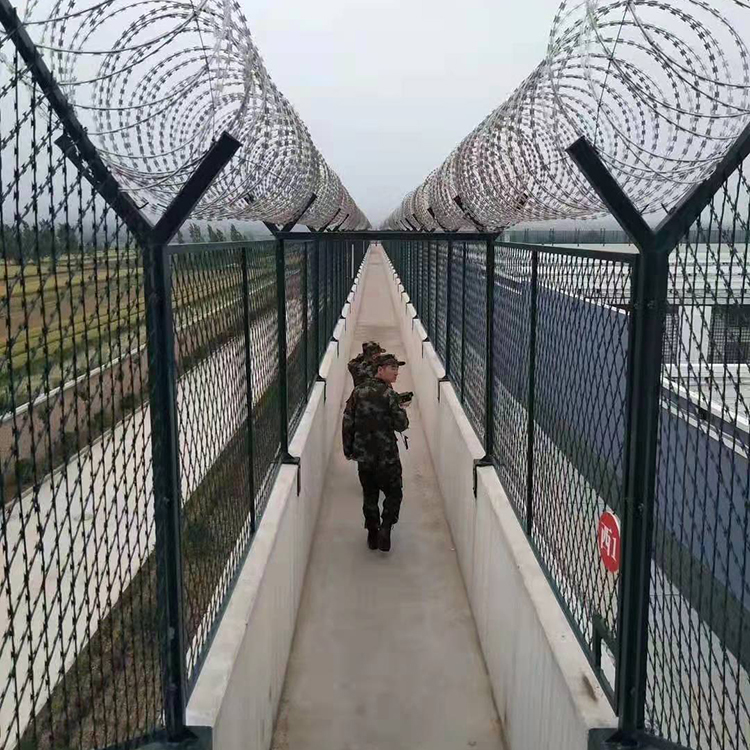 軍事護欄網是一種專門用于高安全領域的防護網,它采用大直徑高強度合金鋼絲制作,具有防攀爬、抗沖擊、抗剪切特性和良好的震懾作用。其設計原理是采用高強度的刀片刺,可以有效地阻止非法入侵者。此外,在軍事護欄網的頂部加裝刺絲、刺繩等設施,可以進一步增強其安全防護性能。