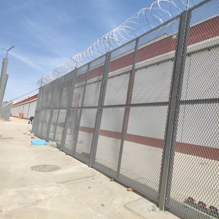 鋼筋焊接式鋼網墻用處:重要用于監獄、照管所、拘留收禁所、戒毒所、軍事禁地、犯禁場地、邊防線、軍事停火線、養殖場、農場果園以及住宅區的保險防護。